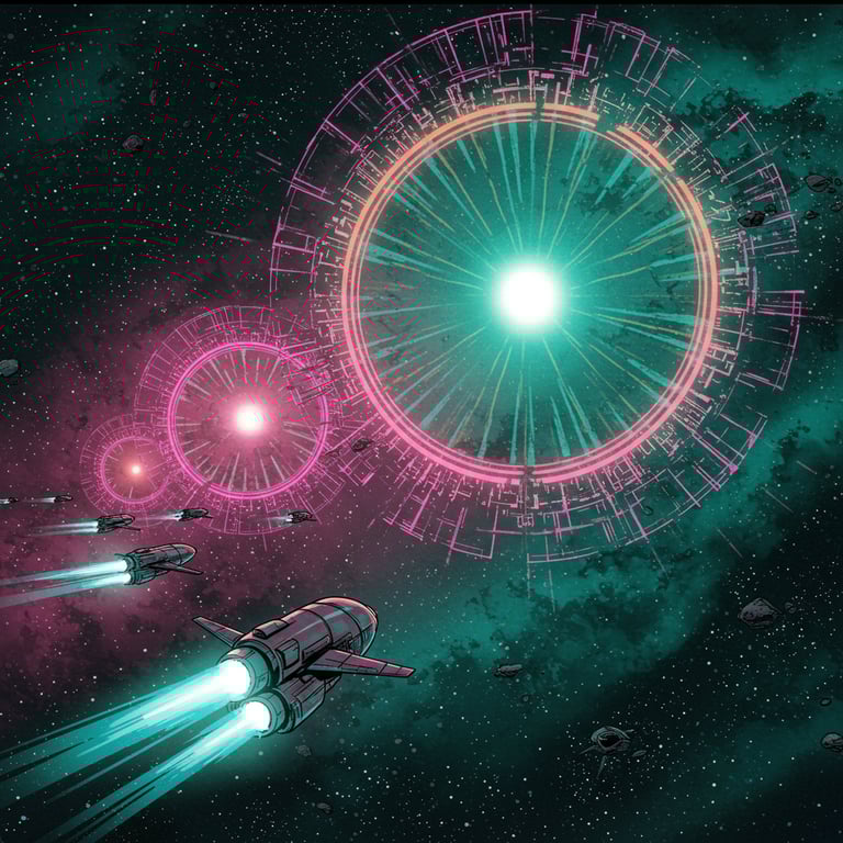 Las Guerras de Colonización fueron el violento resultado de la expansión por el Cúmulo Cósmico. En la lucha por el control de planetas y recursos, las potencias emergentes se enfrentaron en una guerra implacable, marcada por traiciones y alianzas efímeras. La terraformación masiva extinguió civilizaciones enteras, transformando para siempre la Línea Luminosa.
